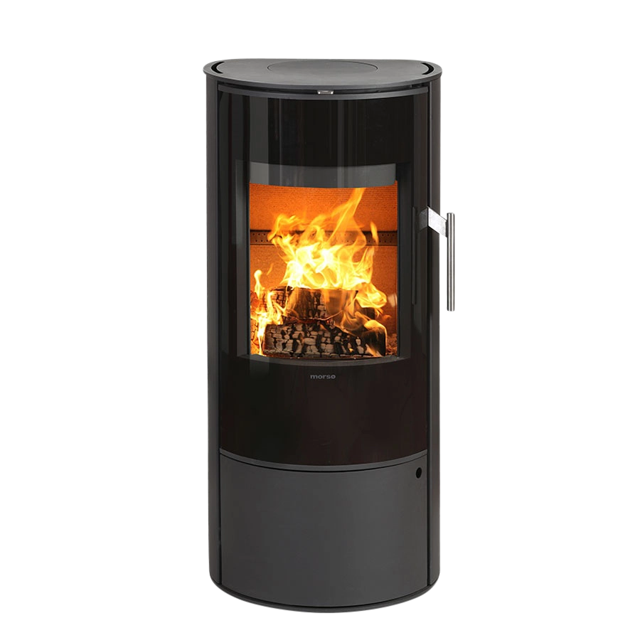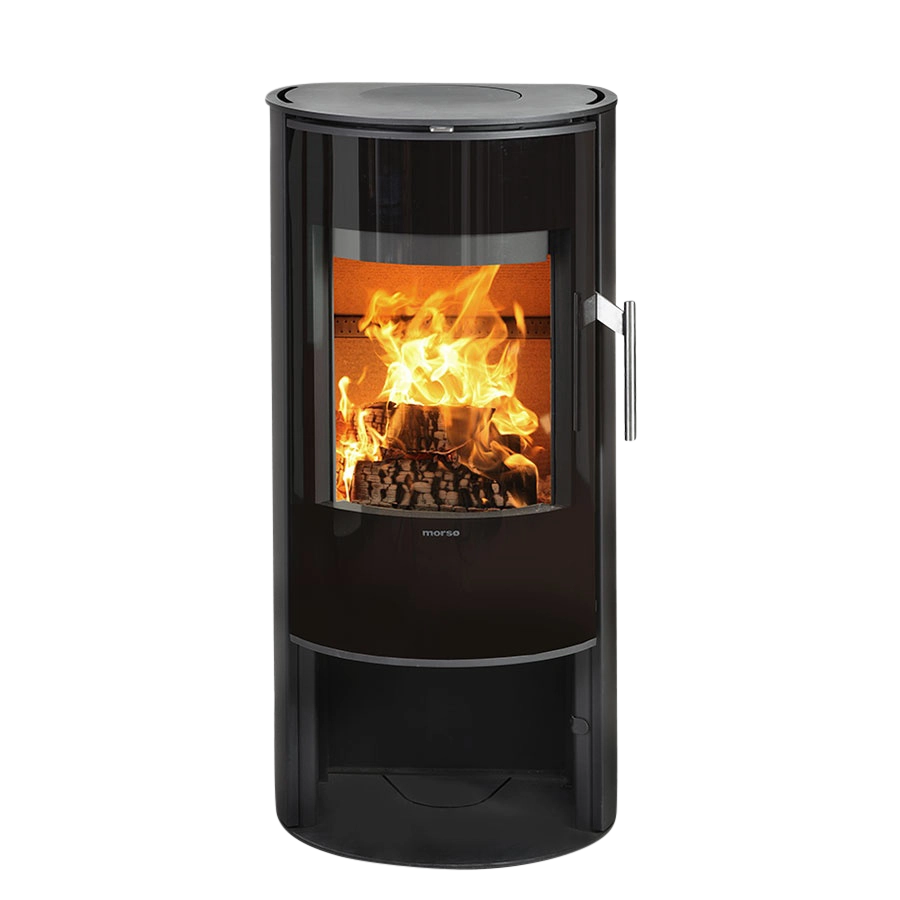 Morsø 4143 leveres også med frontlåge til brændemagasin som tilkøb, hvis man ønsker et mere lukket designudtryk. Det enkle og stramme design giver ovnen et elegant og moderne udseende.