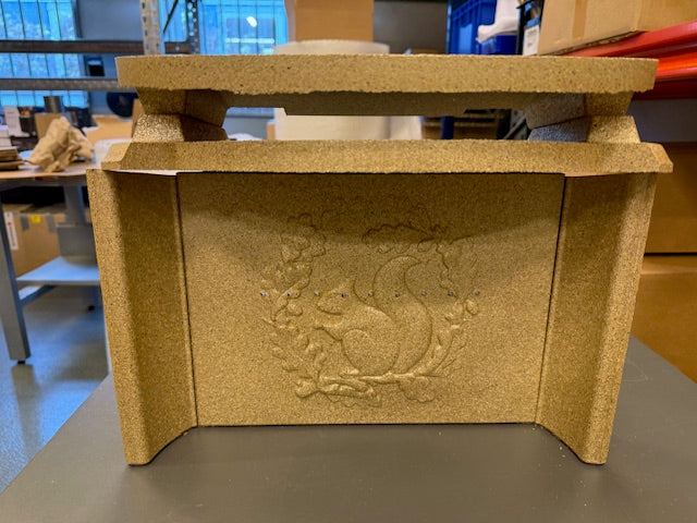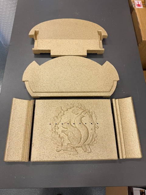 Skamol-Sets bestehen aus Vermiculit, einem speziellen Steingranulat, das unter hohem Druck zusammengepresst wird. Dieses Verfahren verleiht den Vermiculitplatten ihre einzigartigen Eigenschaften wie Brandschutz und Wärmespeicherung. Die Platten sehen aus wie Spanplatten und können etwas zerbrechlich sein. Da das Material porös ist, sollte es mit Vorsicht behandelt werden. Werfen Sie kein Brennholz in die Brennkammer, da dies zum Bruch der Platten führen kann. Risse in den Platten sind nicht schlimm, aber wenn die Risse größer als ca. 5 mm sind oder Teile abbrechen, müssen sie ausgetauscht werden.
